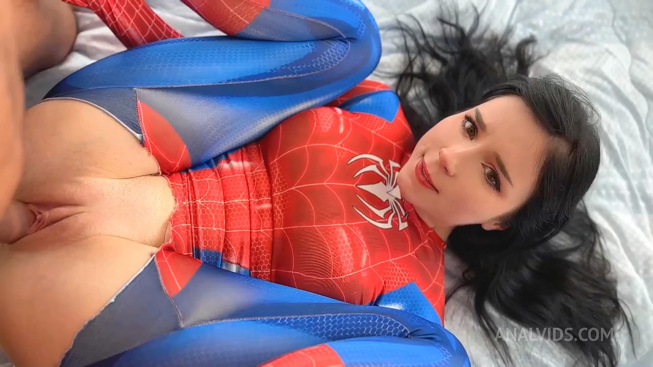 Для стройной русской барышни с крашеными в черный цвет волосами очень подходит костюм героя сериала Человек-Паук, так как он отлично обтягивает все тело телочки с прорезью между ног. Ее задача, как супергероини, отсосать оператора и дать оттрахать свою вагину. Но это только первый такой костюм и дальше малышка надевает похожий черный наряд Женщины-Паука и теперь ее попочку точно не пожалеют, отъебав со всей злостью от лица антагонистов сериала, накончав непременно в анальное отверстие, чтобы сучка знала как себя вести, дополнительно шликая клитор, как будто это не сильно заметно снизу.