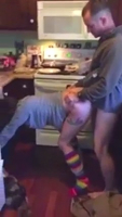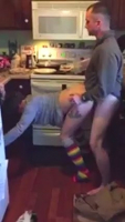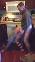 Женщина с большой задницей сложилась практически в пополам на кухне, когда ее сзади поебывает любовник на фоне кухонных принадлежностей. Все происходящее снимает уже старенький муж, иногда комментируя грубым басистым голосом. На него любовник совершенно не обращает внимания и просто наслаждается довольно гибкой потаскухой-хозяйкой, ненадолго отвлекающейся на отсос. Шикарная самка может позволить себе стонать во всю глотку, так как вокруг обычная деревня, где происходит много всего странного, и обычный женский стон не привлечет какого-то внимания, хотя многие бы посмотрели как сам куколд. Причина тряски ног - перманентный оргазм.