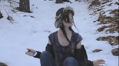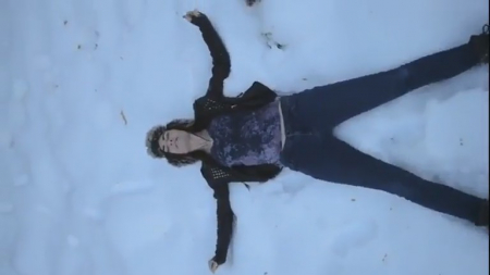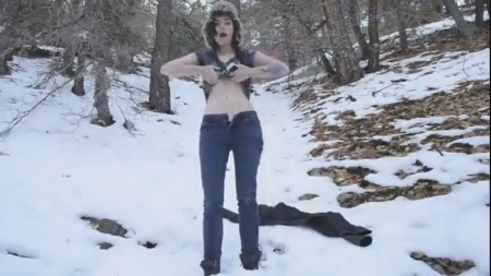 Милашка впервые увидела снег и от радости симпатяга чуть ли не прыгала. Девчонка решила переделать все - начала с легких забав (катание с горы, сделала ангела), а потом начала показывать свои прелести.Девушка сняла легкую курточку, легла на нее и начала дрочить свою киску под открытым небом.