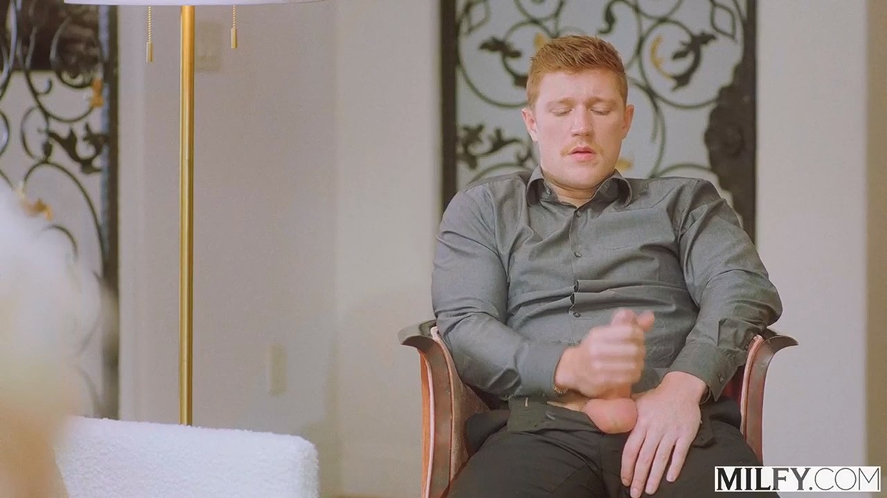 Рыжий парень делает несколько попыток поговорить со своей нанимательницей, все время раздающей какие-то указания помощникам. Он далеко не единственный ассистент и способен не только приносить кофе или выполнять другие физические указания милфы. Просто мальчику понравилась взрослая женщина, не нуждающаяся в спонсорстве, ведь она сама сильно богата, аппетитна и вообще. Однажды она все же высказала ему за то, что он смотрит на ее сиськи, заставив вытащить член и дрочить, пока не кончит. И только после этого короткостриженая блондинка выжала все соки из помощника, заодно сама жестко обкончалась сквиртом.