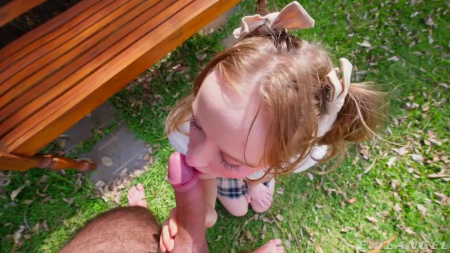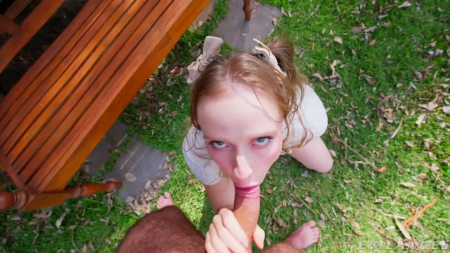 Приятная девушка в юбочке с утра уговорила пройтись с ней по парку, на котором находится красивый арендованный дом. Ей нужно время, чтобы анальная пробка расслабила анус, а сюрприз она раскрыла только на обратном пути, остановившись возле скамейки. Девочка показала затычку и начала сосать член парня, от чьего лица произойдет анальный секс на свежем воздухе. На первых минутах трахалась пара вагинально и лишь потом высовывающая язык сучка получила заслуженный анальный секс на природе в парке, отдрочив длинный, но тонкий член между пирсингованных сисек, на которые кончил горячий любовник.