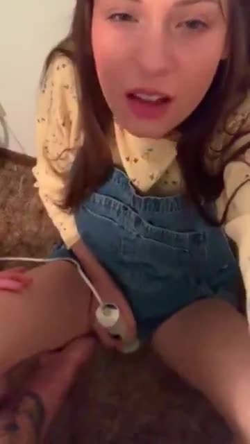 Парочка молодых людей развлекается: одетая в джинсовый комбинезончик симпатичная молодая девушка включила шумный и очень мощный вибратор, прислонив его к киске через одежду. Она снимает свое лицо и промежность, а потом открывает рот, чтобы туда попал хуй бойфренда, вытащенный через ширинку штанов. Милая специально села на полу возле стены, чтобы облокотиться на нее затылком, но заботливый любовник схватил дурочку за голову и пежил ее рот со съемкой крупным планом. Вскоре в его яйцах все закипело и вылилось на ставшее только краше лицо пошленькой девчонки.