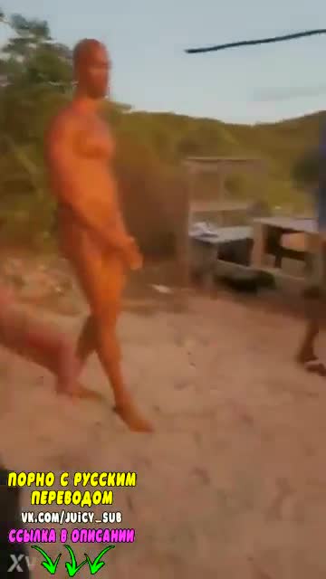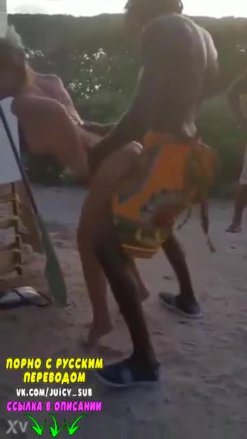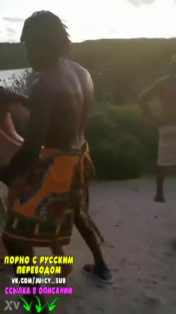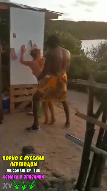 Очень фигуристая секс-туристка на цыпочках стоит возле хижины, наполовину обернувшись к трахающему ее сзади черному туземцу. На улице вокруг собралась целая толпа мастурбирующих зевак и, кажется, там даже еще одна девушка стоит без участия и смотрит на разврат. Жаль, что качество не позволяет разглядеть всю картину в нормальном виде, но явно любительнице острых ощущений и секса с незнакомцами очень неплохо было в тот момент на острове.