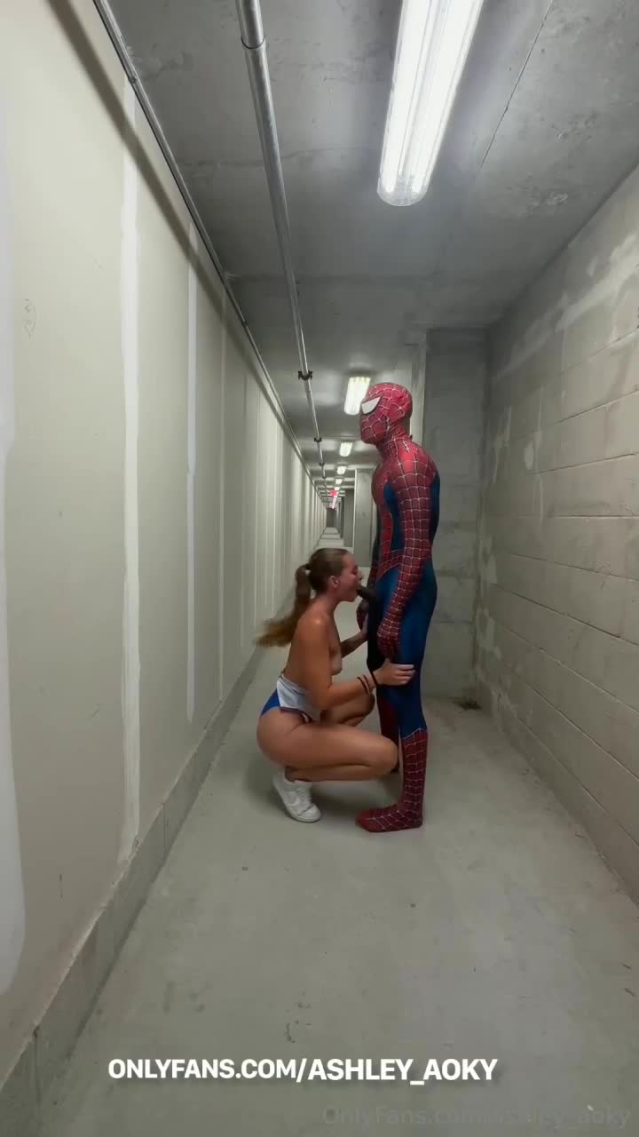 Черный чувак прикупил для себя костюм Человека-Паука, для красивой чернильницы сексуальный наряд красно-синего цвета тоже нашелся. Вместе парочка извращуг отправилась на стройку, где ребята заприметили незапертую дверь. Так как уже слишком поздно для работы, все строители ушли, а свет никогда не выключают. Именно поэтому половые партнеры смогли беспрепятственно перепихнуться на лестнице, даже встав на перила, а также на ночной крыше здания. Чувак в маске оглядывается по сторонам, а вот его перевозбужденной подружке адреналин застелил все чувство самосохранения.