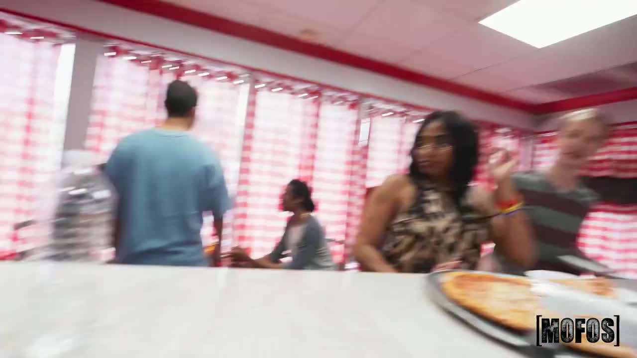 Эта пиццерия не простая, тут всегда много народу, а работники полностью отдаются своему делу. Особенно кассиры за прилавком - они занимаются непотребствами в то время, пока разговаривают с посетителями. Парочка персонала успела и на полу поебаться в туалете и на кухне немного побаловать себя сексом и на диванчике в самой непосещаемой комнате. Когда же уже все клиенты догадались, что здесь трудится шлюха, та в трусах задницей села на куски пиццы, чтобы молодой человек попробовал кусочек с секретным ингредиентом. [Mofos] Lola Aiko, Scarlett Karli - The Pizza Corner.