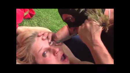 Симпатичная блонди прихорашивалась перед зеркалом, в котором со спины увидела приближающегося незнакомца. Жирдяй приготовил смоченную сильнодействующим веществом тряпочку и поднес ее к лицу хозяйки дома. Она почти сразу потеряла сознание, а рука маньяка потянулась лапать ее сиську. Взвалив на плечо обездвиженное создание, извращенец продолжил лапать жертву со спущенными колготками, которая очнулась до состояния "нестояния", то есть она осознавала происходящее, но никакой отпор дать не смогла, ведь доза снотворного все росла и росла с каждой минутой.