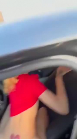 Как только мелкая шлюшка с татуировкой на пояснице "slay me" встала коленями на переднее сидение в красной футболке, бойфренд заснял красивую местность, где по дороге не ездит кроме них ни одной машины. Его рыженькая потаскушка уже оборачивается на любовника и вопрошающим взглядом требует, чтобы он вставил в ее анальную дырочку свой член. Отказать в такой безмолвной просьбе вряд ли кто-то бы смог и потому он неторопливо загнал пенис в дырочку, пока его маленькая дрянь крутит задом снимая футболку, чтобы он легче проваливался и приятней. Приятно точно было хорошо - всего две минуты и парень кончить в анал.