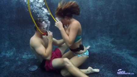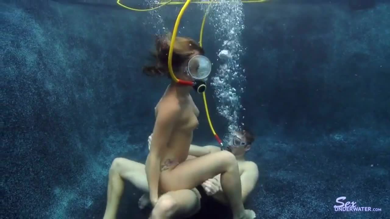 Первой под водой бассейна оказалась девушка с небольшими титьками. На лице актрисы была надета маска, чтобы она могла видеть весь процесс соития с парнем, вскоре присоединившимся. Для удобства к парочке через специальные трубки подается кислород сверху и они могут полностью отдать себя процессу, не отвлекаясь на всплытие на поверхность. Самое интересное тут не сама красотка, имеющая весьма неплохие бедра и красивые ноги, а то как красавица стонет в ту самую трубку для рта, а прекратить это не может и даже не хочет, ведь партнер классно трахается, да и обстановочка располагает на возбуждение. Scuba fun and sex.