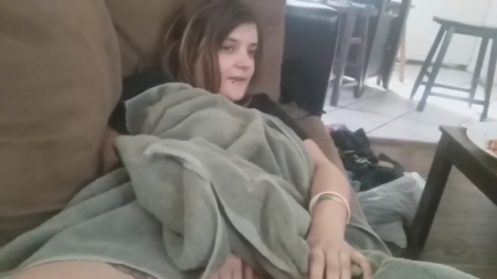 Пышнотелая телочка в гостиной дрочит себе под одеялом - теребит клитор. В комнату заходит ее брат с включенной камерой и застает милашку за ее похабным занятием. Девушка приподнимает конец одеяла и продолжает трахать себя (просто рядом на кухне сидит мама). Когда же мама с кухни уходит, симпатяга раскрывается полностью и показывает братцу еще и сиськи большие. "За кадром" парень дрочит себе на мастурбирующую сестру.