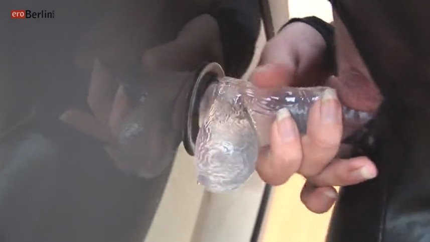 Умело насаживается на дилдо прикрепленный к стеклу