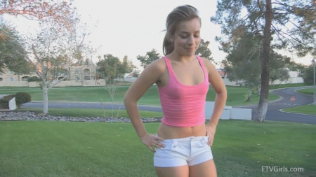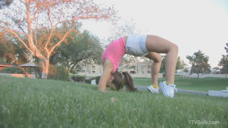 Симпатичная девушка в коротеньких шортиках и топике утреннюю пробежку совершает. Остановившись на зеленой лужайке, очаровательная девушка все время пытается сделать один из элементов на камеру, но увы ничего не получается. Только когда милашка сняла белые шортики, у нее получилось осуществить задуманное. А "оператору", да и нам, дорогие зрители, выпал шанс вдоволь насладиться молодым стройным телом с аппетитными формами.