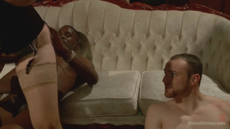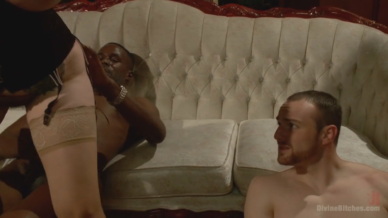Пышногрудая красноволосая сучка лишь когда замуж вышла, узнала о некоторых особенностях своего мужа - допустим, о том, что муж ее предпочитает других мужчин (он бисексуал, но все же секс с мужчинами доставляет ему гораздо большее удовольствие). А страстной по натуре девушке не хватает мужских ласк и она часто имеет случайные половые связи. В один из дней очаровашка соблазнила чернокожего мужчину, который молоко привозит, и с ним жарким сексом на кухне занялась, а потом и своего мужа подключила к любовным играм.