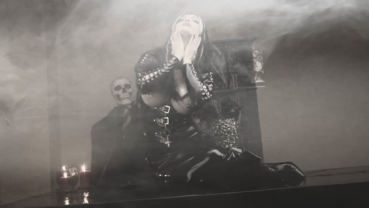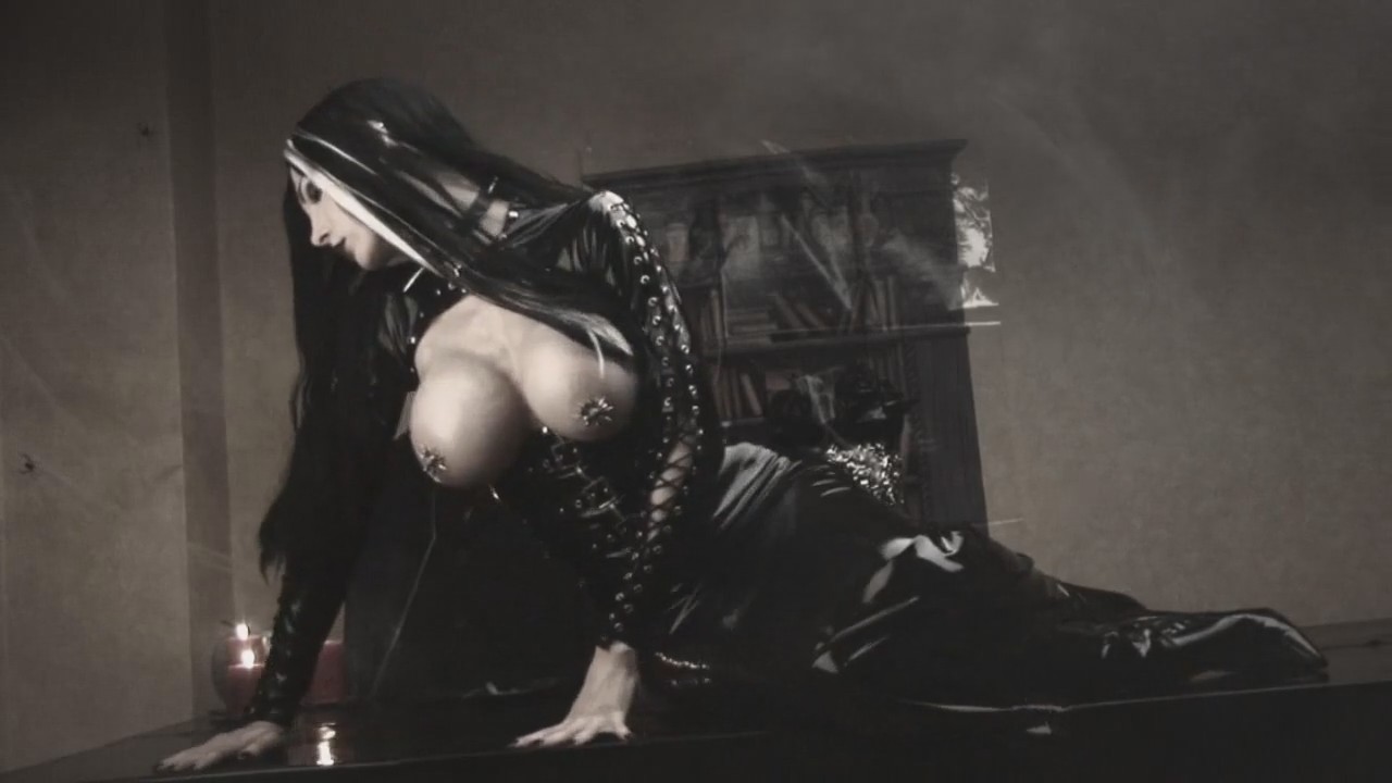 Видели в живую ритуалы готов? Вам выпала уникальная возможность понаблюдать за подобным действием. И уникальна эта возможность совсем другим - дело в том, что обряд подготавливает сексуальная девушка в латексном костюме, да еще и с обнаженной грудью. Упругая сочная грудь притягивает взгляд и пробуждает воображение. Девушка к тому же поливает сиськи горячим воском.