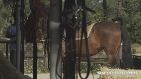 Объездив лошадь, мужчина объездил и свою страстную подружку, которая очень соблазнительно выглядела в форме жокея. Охваченные желанием любовники даже не стали заморачиваться и куда-то уходить - занялись сексом возле скакуна. Короткостриженная симпатяга с упругими сиськами приняла твердый фаллос в свою попку, доставив удовольствие и себе и другу.