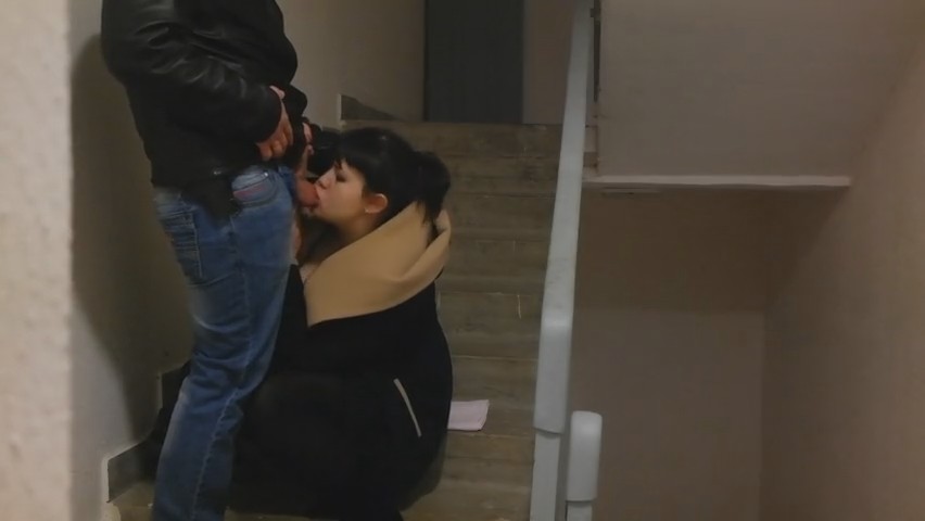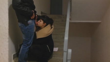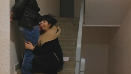 Довольно привычно видеть в подъездах обнимающуюся молодежь. Вряд ли на лестничной клетке вы ожидаете увидеть уже повзрослевших состоявшихся людей. Но, как оказалось, есть и такие. Именно подъезд показался извращенной парочке самым необычным местом и на лестнице между этажами полненькая сучка удовлетворила орально своего мужчину. Ребята даже камеру специально напротив ступенек установили, чтобы после насладиться вновь произошедшим.