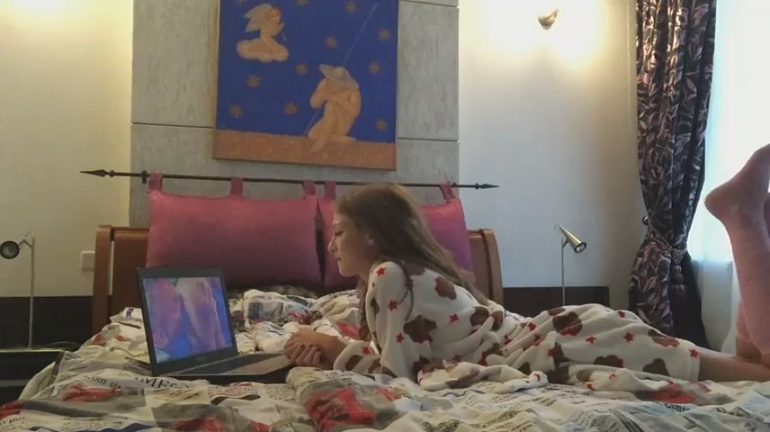 Думаете основными зрителями порно фильмов являются мужчины? Уж поверьте, девушки не отстают от сильных мира сего, увлекаясь просмотром контента для взрослых. Симпатичная девушка в коротеньком халатике, просмотрев достаточное количество роликов, наткнулась все же на тот, который равнодушным ее оставит не смог. Представив себя на месте главной героини и, наслаждаясь громкими стонами, срывающихся с уст "незнакомки", сексапильная худышка раздвигает ножки и яростно надрачивает себе.