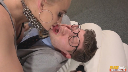 Работа психотерапевта невероятно скучна, но зато хорошо оплачивается. Выслушивая жалобы богатенькой клиентки, мужчина так устает от бабского трепа, что уже не слушает милашку, думая о своем. Неожиданно мужчина обращает внимание на аппетитную грудь женщины и ему приходит в голову отличная идея - психолог достает член из брюк и начинает наяривать. Возня и некоторый шум привлекают внимание клиентки, но вскоре она вновь отворачивается и продолжает "проповедь". Мужчина же встает прямо за головой очаровашки и продолжает заниматься бесстыдным делом - в этот раз милашка палит контору. Возбужденная женщина с некоторой яростью накидывается на мужчину и после предварительных ласк отдается робкому самцу, никак не ожидавшему подобной реакции от сисястой чикули.