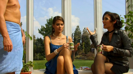 Две богатые дамы заметили в своем бассейне паука. Им не хватило отваги вытащить насекомое самим, поэтому они позвали на помощь мужчину. Он достал паука, но после этого недалекие леди попросили залезть в воду, чтобы проверить чист ли бассейн. Парень отказывался и тогда брюнетка в чулках столкнула его. Мужчина отомстил дамочкам своеобразно - сначала трахнул их потом обоссал.