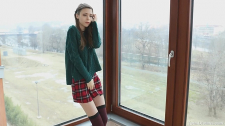 Когда на улице непогода - серость и уныние - чем можно занять себя? На самом деле существует огромное количество способов скрасить досуг, но самым приятным, пожалуй, является физическое удовлетворение. Прелестная стройняшка не стала долго думать и подарила себе несколько минут счастья. Что сделала очаровательная малышка? Все просто, девушка поиграв сочной грудью, присела на подоконник и приласкала себя, неторопливо потеребив клитор.