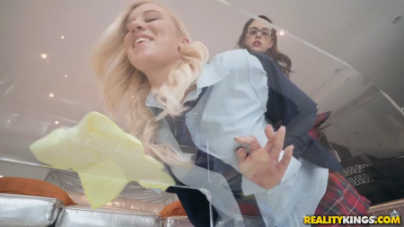 Сексапильная женщина оказалась буквально помешана на чистоте - очаровательная леди успокоиться не может,если вокруг все не блестит - и это несмотря на то, что дамочка может нанять толпу служанок. Женщина и своих падчериц (сестер двойняшек) пытается к порядку приучить, но все тщетно. В один из дней вернувшись с учебы одна бросила рюкзак не в том месте, а вторая поступила и вовсе изощренно - села на стеклянную поверхность,которую мама довольно долго полировала. Это настолько взбесило женщину, что на решила проучить заносчивых девчонок. Правда, наказания то и не было - милф занялась с блондинками жарким сексом на диване в гостиной, и всем участницам было безумно хорошо.