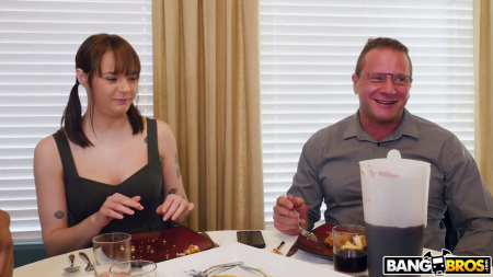 Молодой человек во время знакомства с родителями подружки вел себя надменно (смотрел на всех с высока, хоть и ростом в=не вышел). В общем, видимо эта черта привлекла внимание развратной мамки, поскольку паренек сразу попал в зону ее интересов, о чем дамочка и дала понять гостю. Якобы случайно уронив ложку во время трапезы, дамочка залезла под стол и принялась наяривать черный ствол. Некоторое время спустя ребята скрылись в спальне, где невысокий самец хорошенько отжахал маму.
