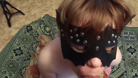 Симпатичная женщина в маске на колени перед своим мужчиной без труда опустилась и приласкала его толстенький писюн. Рыжеволосая развратница не просто отсосала хуй, она насладилась каждым мгновением, кайфуя не только от удовольствия своего партнера, но и от самого ощущения пульсирующей плоти - и вкус и бархатистость члена сводили дамочку с ума. Естественно, в ходе неторопливых ласк мужчина получил огромное наслаждение и накончал подруге в рот.