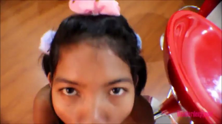 Кастингом это можно назвать с натяжкой, так что скажем, что это домашний кастинг подруги в порно, чисто ради фана. Но снимать чувак явно нашел кого, такую просто на улицах не встретишь. Маленькая глупая тайка с наивной улыбкой и попыткой развлечь партнера принимает член в свой ротик на камеру, с причмокиванием его отсасывая. Далее парень сажает крошку за барный стул так, чтобы ее бедра слегка сползали, и на всех парах трахает ее в попку, пользуясь случаем и ее беззащитностью.