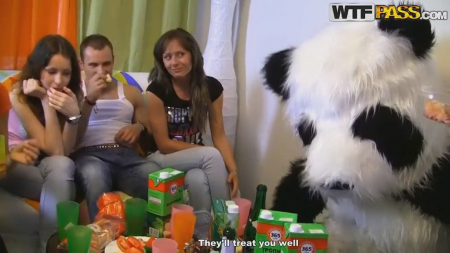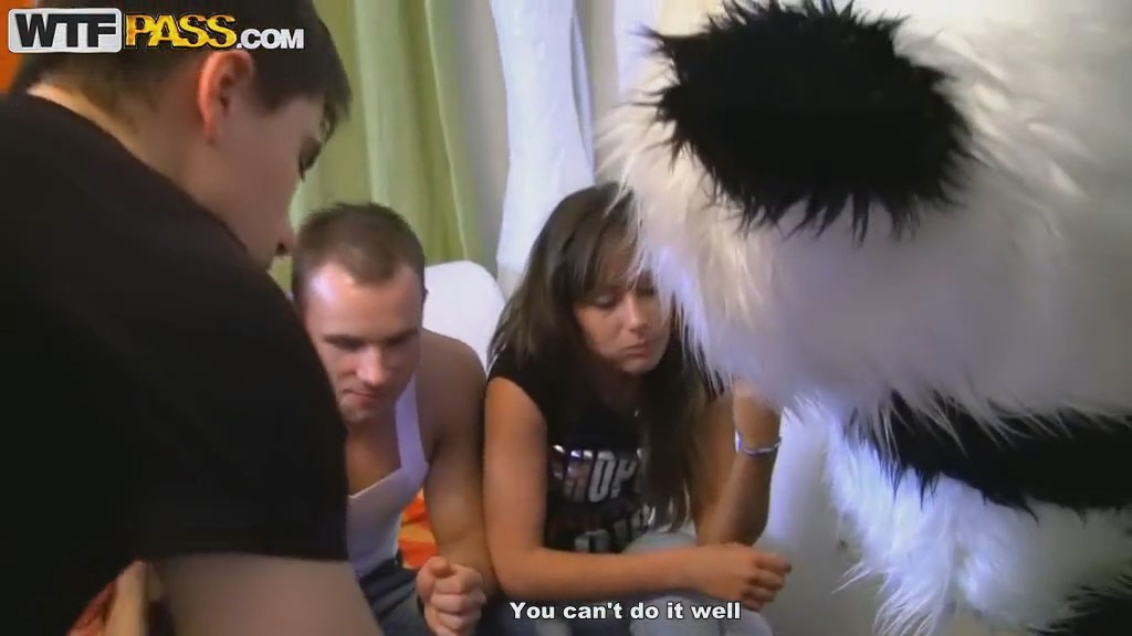 На вписке, если ты хочешь трахнуть какую-нибудь сучку, надо держать ухо востро. И пока в гостиной происходит туса невиданного масштаба, что там даже фигурирует чувак в костюме огромной панды, надо действовать, пока все не ужрались в полное говно. Латинос - парень целеустремленный, поэтому после первой стопки и веселого тоста сразу же пошел рыскать по комнатам в поиске "не таких", которые тихо отдыхали за стенкой. Легко почуяв, что она тоже пьяна, он без особого развратил недотрогу и трахнул ее своим большим стволом. А тут и подруга ее подоспела, и завидев, что главная стесняшка на вписке ебется во всю прыть, тоже решила присоединиться к трахающейся парочке.
