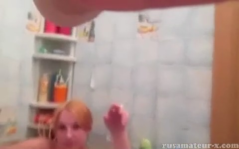 Рыжая кончает в душе