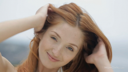 Она просто неотразима. Если кто-то мечтал о милой рыжей девушке, то вот он, ее идеал, который, наверное, представляли все. Стройное тело вкупе с органично смотрящейся грудью, не слишком большой, но и не самой маленькой. Маленькая россыпь веснушек на лице, томный, но невинный взгляд. Грация в движениях, в которой прослеживается не только безупречная женственность малышки, но и бесконечная милота. Причудливый розовый сарафан она сбросит буквально через пять минут, начав тискать свои аккуратные соски, а дальше покажет вам все, о чем вы только могли попросить.