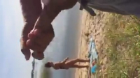 Лесби на пляже решили побаловаться, а парни дрочат на это