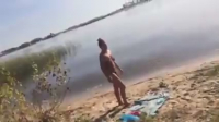 Летнее солнышко, жара и холодное томное озеро. Что может быть лучше, чем надеть купальник, да немного позагорать, а как только телу станет жарко - разбежаться и нырнуть в воду. Девчонка поставила себе именно такую задачу, но вот проблема - сзади нее нарисовались два наглухо отбитых дрочил, которые мало того что не стеснялись на нее передергивать свои пиструны, так еще и на камеру снимали. Но девушке такое внимание даже нравилось - она немного покрутилась для них, подождала, пока они кончат и свалят, а уже только потом занырнула в воду, забыв этот случай как страшный сон.