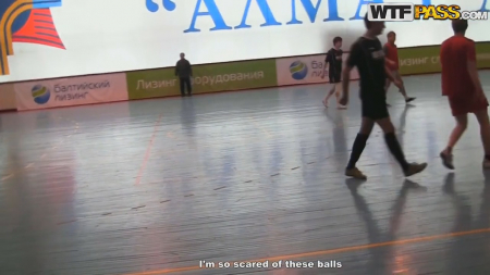 Ребятки снимали дамочек на улице, и тут мимо них проходит довольно неплохая брюнетка, которая явно куда-то спешит. Они быстренько остановили ее, да спросили, куда девица держит путь - оказалось, что в спортзал неподалеку, забыла там сумку с вещами. Парни оживились и видя, как неохотно девчонка хочет брать их с собой, вспомнили, что сегодня там играют в мини-футбол товарищеский матч Алмаз - Антей, и предложили посмотреть его втроем. Девчонка согласилась, но так как матч был говном, они переместились в раздевалку. А потом трахнули брюнетку, предложив ей денежку.