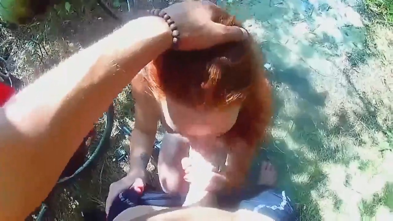 Развлекаться с девчонкой, будучи одними на озере - то еще удовольствие. Особенно когда это стройная и обаятельная рыжуля, которая несмотря на фигуру имеет неплохую по размерам и очень красивую грудь. Так что чувак включает камеру и начинает яро приставать к девчонке, пытаясь ухватить ее за сиськи. Та брызгается, но вскоре перестает мешать получать и ему, и себе удовольствие. После предварительных ласк пара отошла в кусты, где рыжая бестия сделала чуваку еще тот минетище, а затем он упер девку о бревно и стал переть раком, от чего та стонала на половину ближайшего садоводства.