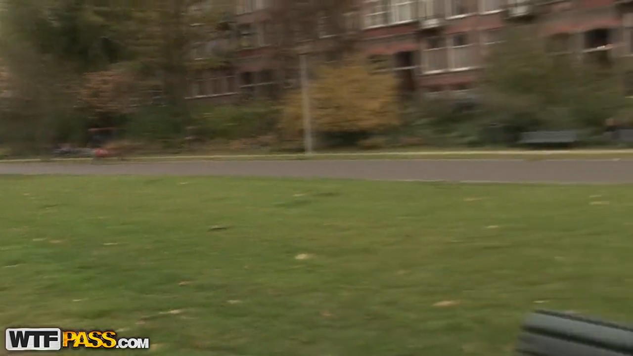 Охотник на легкодоступных жертв женского пола вышел прогуляться с камерой в поисках извращенной незнакомки, которая согласиться переспать с ним в любом месте, даже на улице. Ему на глаза попалась девушка с крашеными черными волосами, которая выбирала плитку на уличном стенде. Мужчина начал вести разговор о плитке, узнал что она напольная и какая нравится затеявшей ремонт девушке. Парень ей сразу понравился, телочкам нравится подвешенный язык у молодых людей. Разговорившись она дала понять, что не против пошалить в ближайшем лесочке и что нравится эксгибиционизм в легкой форме. Вместе пара направилась в сторону парка со множеством деревьев, а самка иногда оголялась публично, дразня оператора. Добравшись до подходящей точки они заметили парня на велосипеде, он стоял спиной, но заниматься сексом при нем - просто не вариант. Тогда ребята отправились немного подальше, где чернявая эксгибиционистка заявила, что всего один раз трахалась публично и это интересно попробовать вновь. Чтобы никто потом ничего не заподозрил и были пути отхода, мужчина расстелил плед с фруктами, на который и встала рачком брюнетка, предварительно попробовав член нового знакомого на вкус. Удивительно как мало спермы выделилось из пениса в самом финале.
